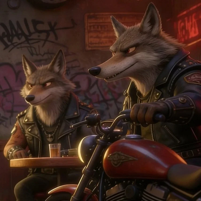 The Iron Tread Gang loves two things: big engines and making a lot of noise! You can always tell when they are nearby because you’ll hear the vroom-vroom of their heavy bikes echoing through the streets. They spend their days in the Rust Belt, fixing up old machines and painting their bikes "Agency Blue."